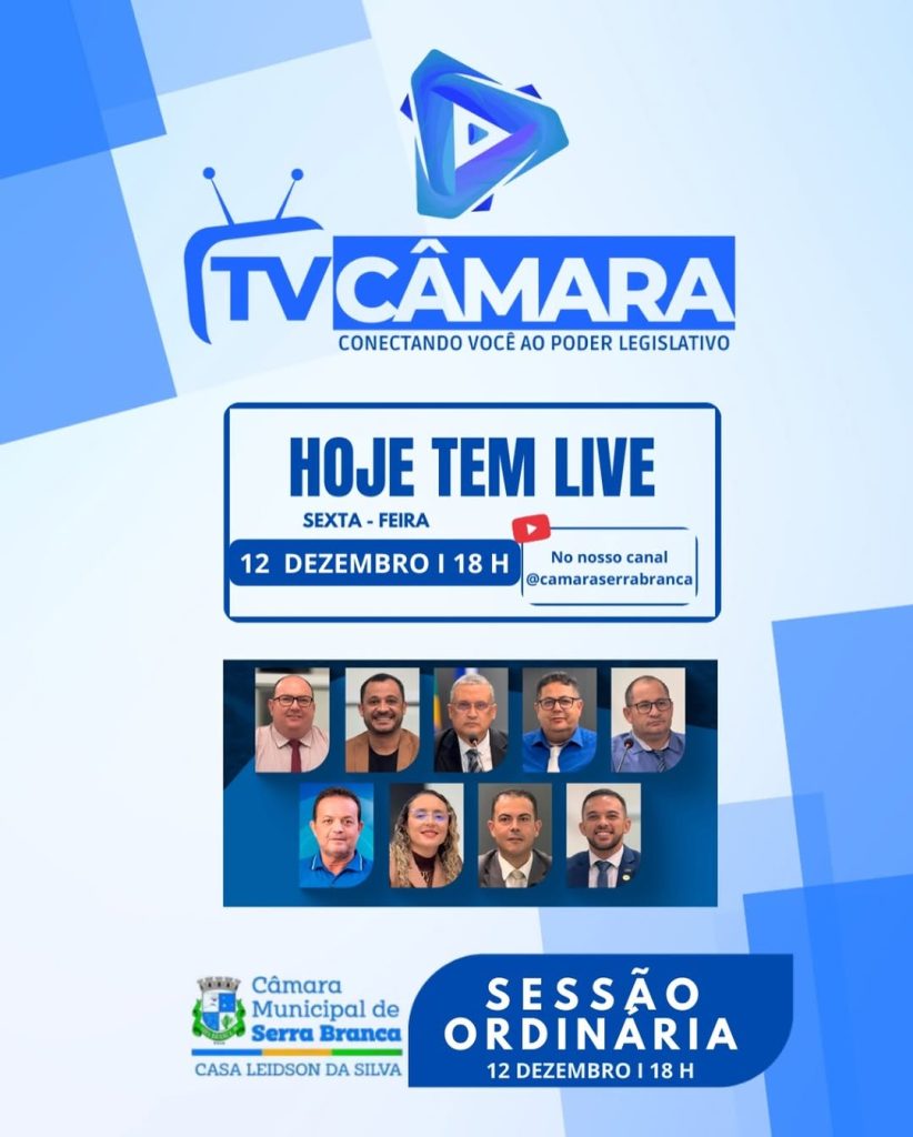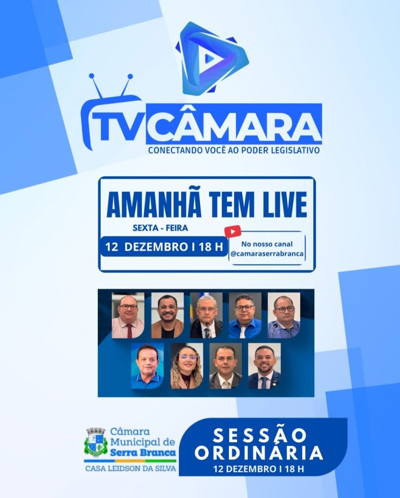 Amanhã tem Sessão Ordinária na Câmara Municipal de Serra Branca! Às 18h, você acompanha tudo…