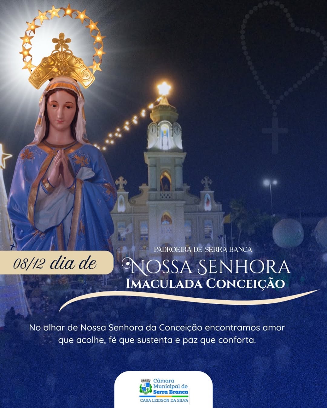Neste 08 de dezembro, celebramos o dia de Nossa Senhora da Conceição, padroeira de Serra Branca. Uma data especial que renova nossa fé e nos lembra da importância de caminharmos com esperança, amor e confiança na proteção divina.
