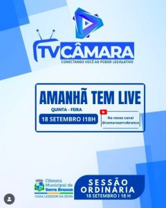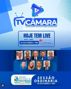 Hoje tem Sessão Ordinária AO VIVO na TV Câmara de Serra Branca!
